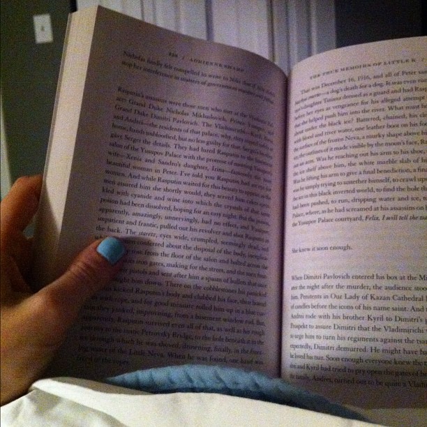 is about a Russian ballerina who is also mistress to the last tsar. As an old woman exiled in Paris, she tells the story of her life in Russia and how it intertwines with the imperial family and their downfall in the revolution. It took a while to get into because (a) I don't know a ton about this period of Russian history, so names and places were a bit unfamiliar, and (b) the character really was quite annoying at first. By the end I did like the book; Little K's scheming and conniving to get the royal family's attention at the beginning of the book just feels shallow and immature, but by the end it's interesting to see how she tries to use those same characteristics to save her family during the revolution in spite of their imperial connections.