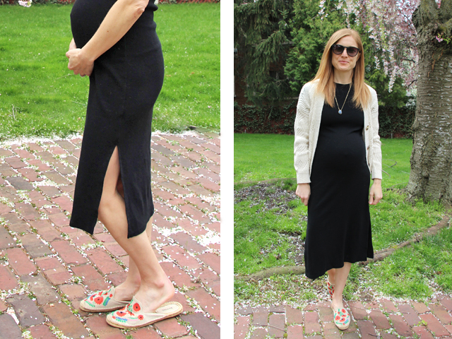 Stretchy is always pleasant to wear of course, especially as we ease back into the world of real clothes from the loungewear of quarentimes, but by this point in a pregnancy it's not only a must in terms of being able to fit onto my body but also in terms of feeling more flattering for me personally. There are plenty of roomy dresses on offer right now too that I could shop the "regular" section for and would totally try on in any other summer - like this or this, so cute! - but I just feel better fitting my shape in pregnancy rather than tenting over it (except for that outie belly button - don't love it, but what's to be done). So this is best of all worlds for me - don't have to shop the maternity section and its either paltry or over-expensive options, but it still works and looks/feels good!