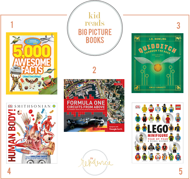 Above are a variety that we've borrowed (or even bought, which turned out to be well worth it) that are some great examples of books with lots of info in easily digestible snippets, great pictures, and a deep dive into a variety of topics, whether you have a kid who loves the Harry Potter series, random facts and trivia (he also loves this series), Legos, biology/science (this is another fave), even Formula One racing (Peter loves this book too - the aerial maps are quite cool).